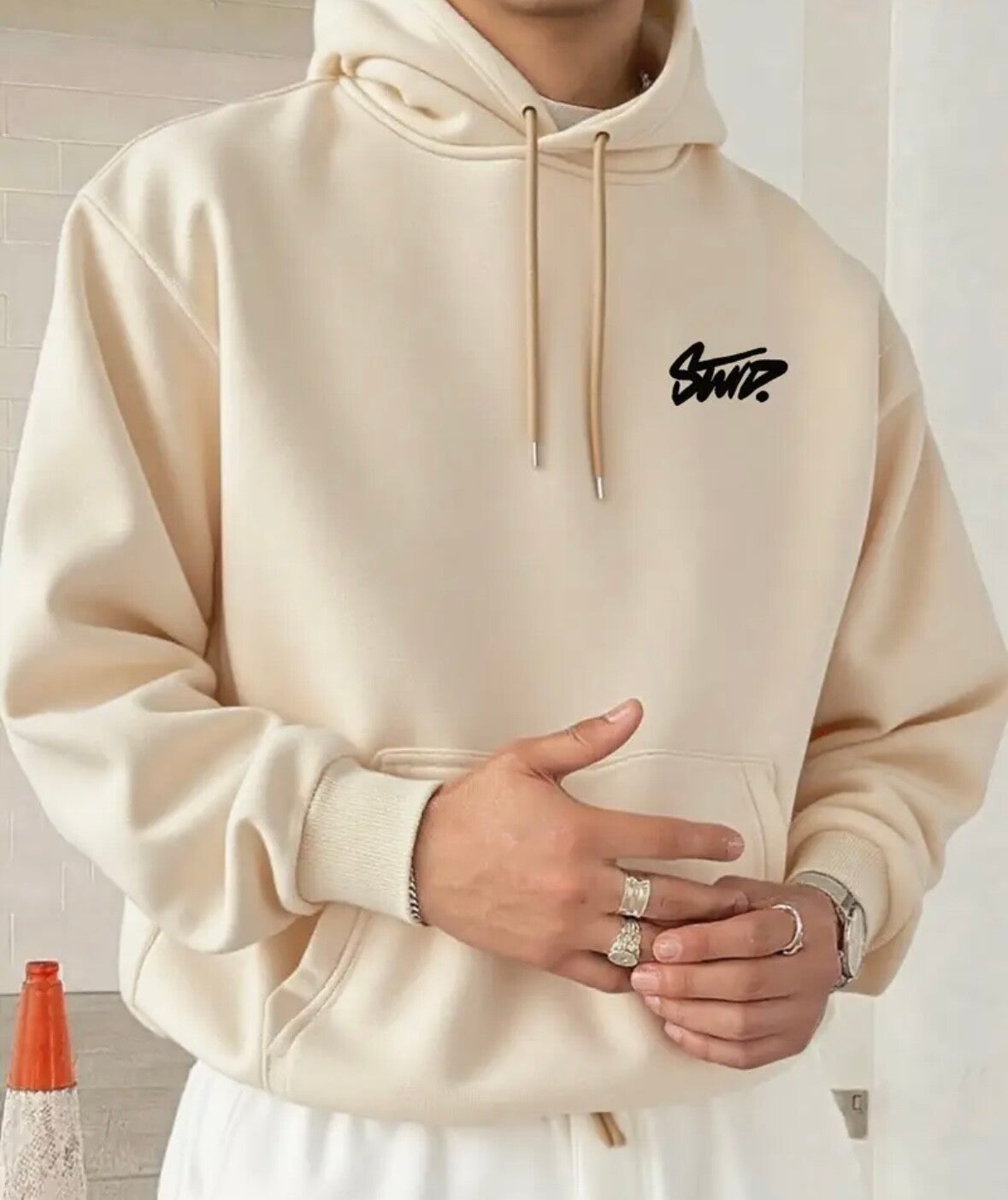 Le hoodie STWD allie confort et style streetwear. Sa coupe oversize et son logo signature apportent une touche moderne et urbaine. Disponible en noir, blanc et beige clair, il s’adapte à tous les looks — du plus décontracté au plus tendance.